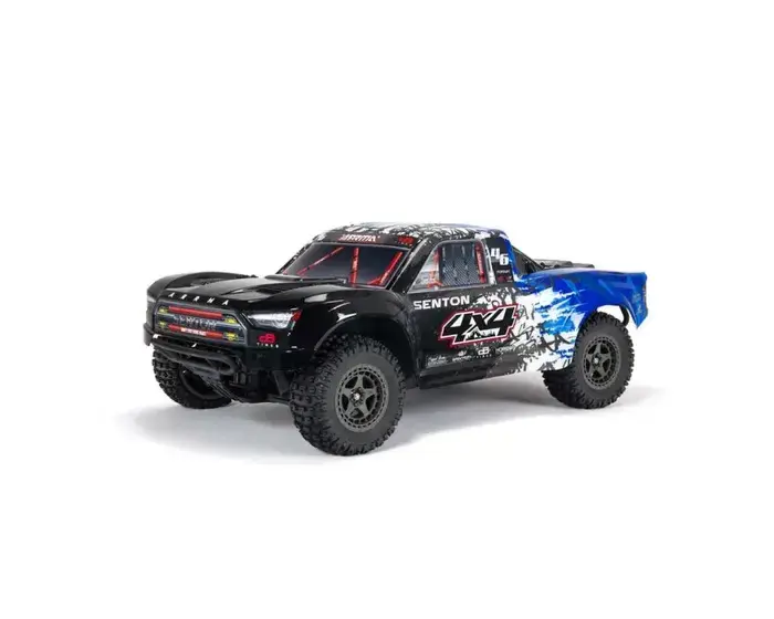Tough gunmetal coloured, multi-spoke wheels with vented dBoots® Fortress™ SC tires give the 1/10 scale SENTON™ 4X4 3S BLX RTR Short Course Truck effective traction for bashing on almost any terrain. The aggressively styled Short Course truck body — available in blue/black or red /black— looks great in action and even better up-close, where the attention to detail on the decal and body aesthetics really shines.