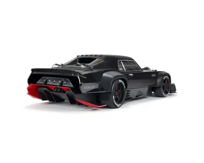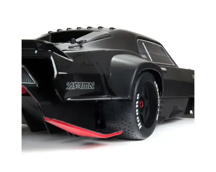 The multi-part, undercut muscle car body design with an aerodynamically adjustable wing delivers standout street bashing style. It can also be customized with the included accessory kit and decals to provide scale muscle car looks the way YOU want them. The FELONY™ 6X BLX Street Bash RTR’s eye-catching appearance extends to the realistic 5-spoke wheels mounted with dBoots® Hoons™ all-road tires. For authentic muscle car handling, ARRMA® engineers have included regular front and larger rear tires, with the front and rear gearbox ratios matched to the tire sizes.