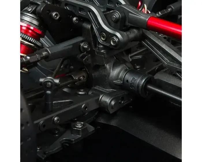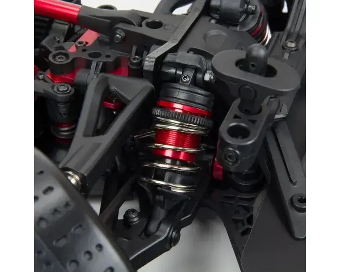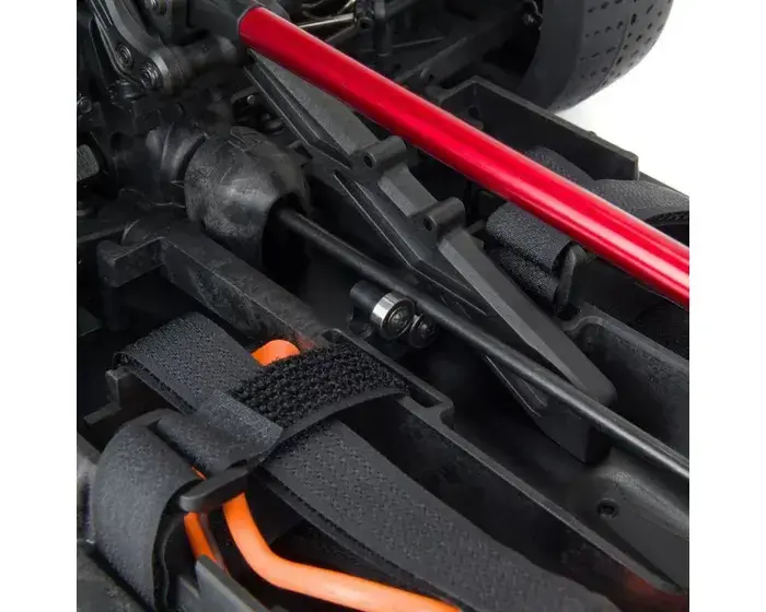 Underneath those streamlined Street Bash looks is a chassis which proves to the world, once again, that ARRMA® builds the most durable bashers. The 6061-T6 anodized aluminium chassis houses a heavy-duty drivetrain with steel driveshafts plus all-metal diff outdrives and gearbox internals. Its toughness is reinforced with a centre chassis brace. The adjustable, oil-filled, anodized aluminium shocks are mounted on strong, black-anodized aluminium shock towers. Push the throttle to the max — the FELONY™ 6S BLX Street Bash RTR is made to take it.
