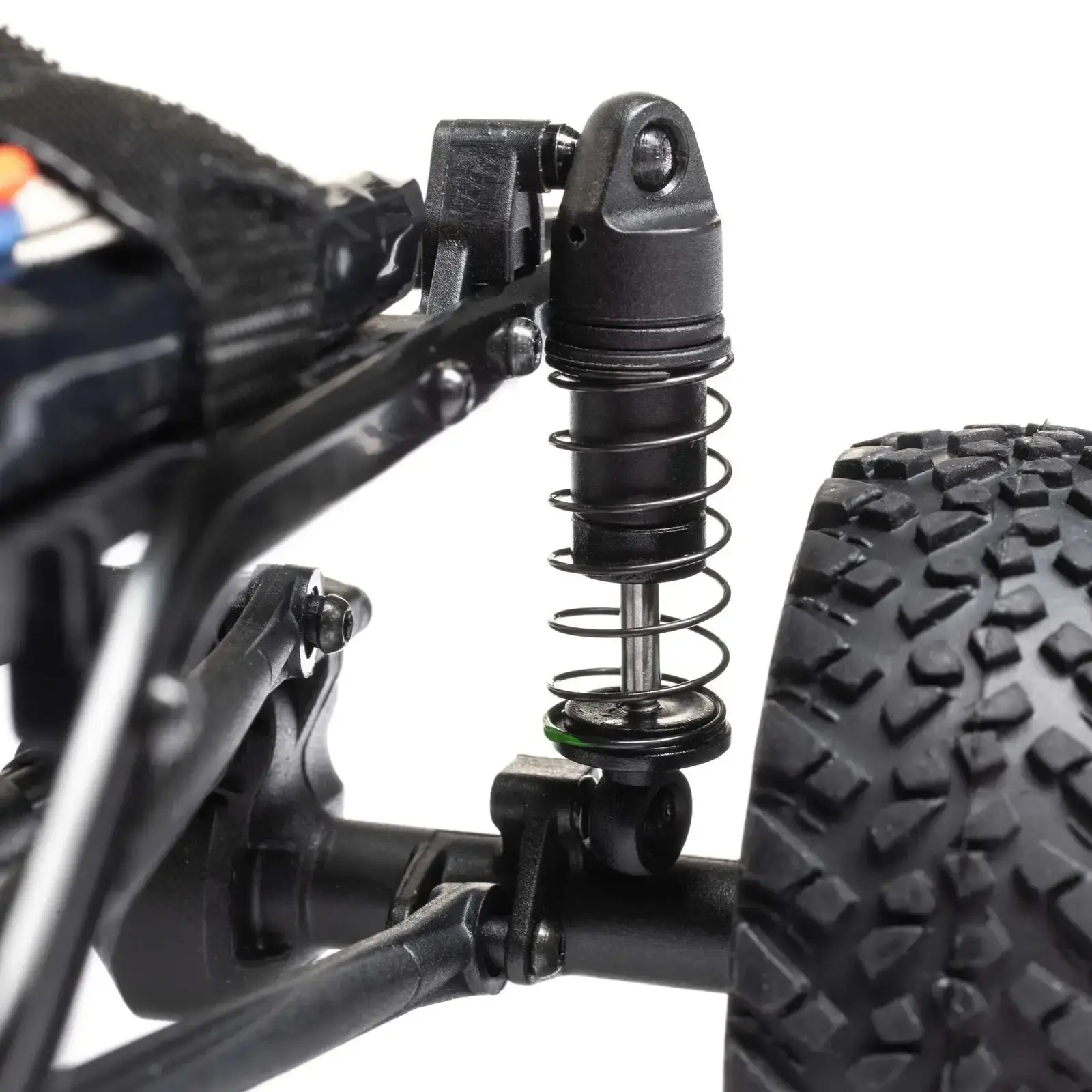 The front and rear axles consist of a two piece, molded composite solid axle design. For optimal handling, the SCX24 suspension features a 3-link front and 4-link rear setup.
