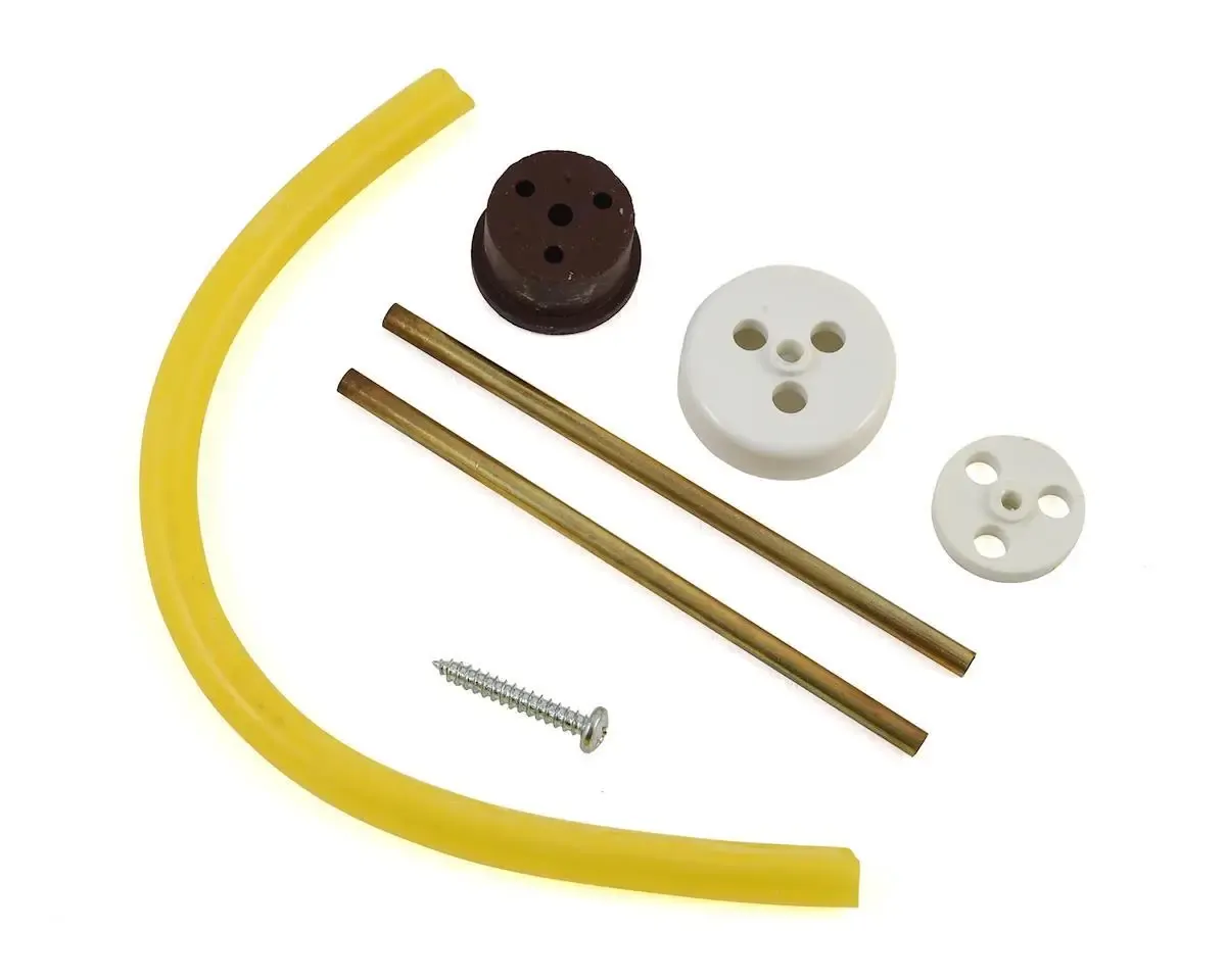 Dubro 2-24oz Fuel Tank Cap and Fitting. This kit includes replacement components for 2-24oz tanks using gasoline fuel. Completely re-build your DU-BRO fuel tank with original DU-BRO components to insure a long, leak-proof life. Package includes one cap, one backing plate, one stopper, two brass tubes, pick-up tubing and hardware.