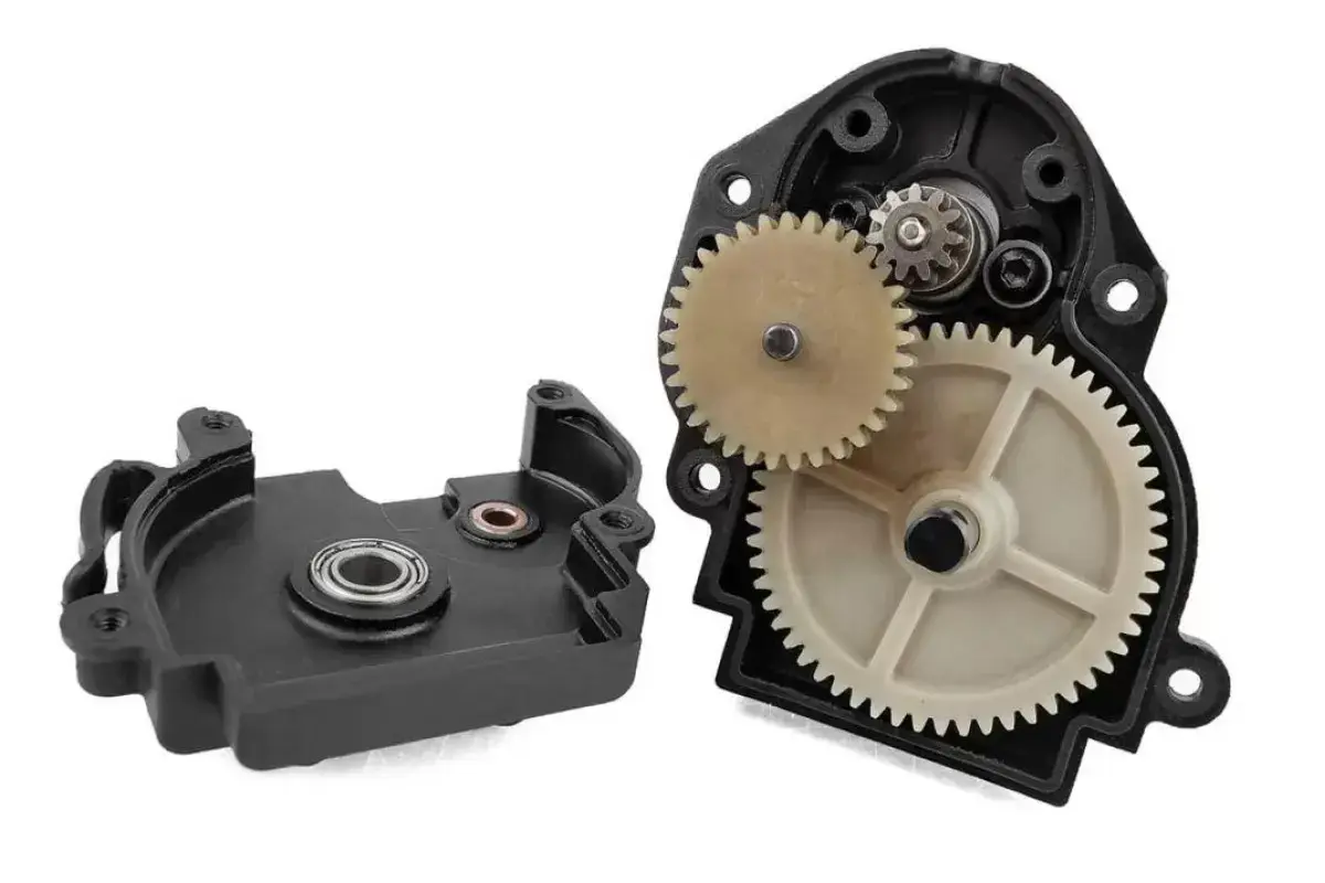 - 13.98:1 ratio 3-gear transmission with integrated motor mount