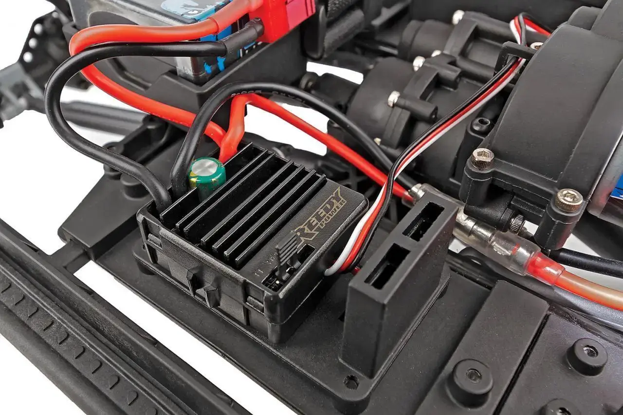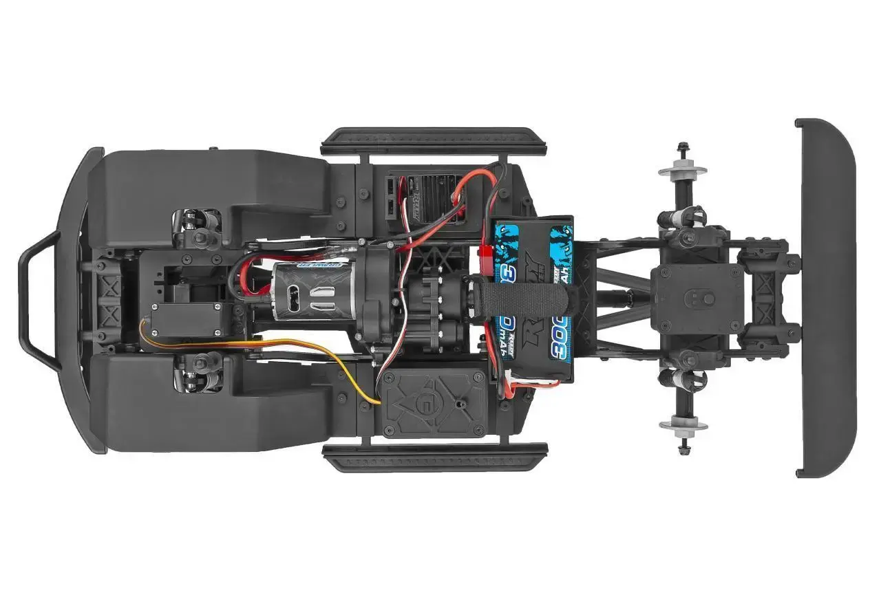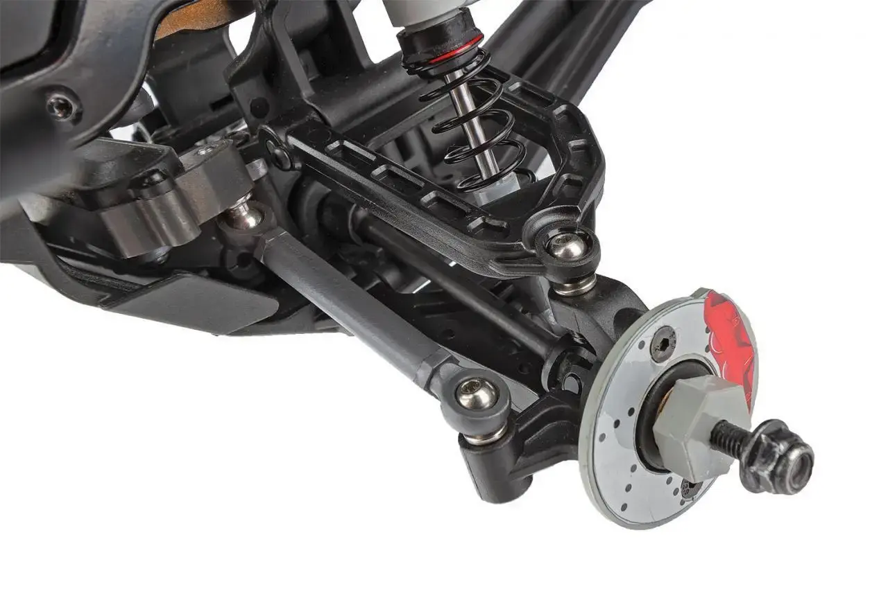 The updated rear axle has more ridges and supports for added durability and features a larger input bushing capable of handling higher loads. The newly redesigned IFS improves handling, ground clearance, and performance with ultra scale looks. Also found throughout the drivetrain are 24 metal bushings for a long-lasting, reliable, and maintenance-free drive system. Controlling the bumps are our ultra-smooth threaded plastic shocks with bleeder cap screws for easy airless bleeding and mini springs to keep the center of gravity low.