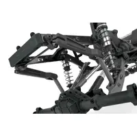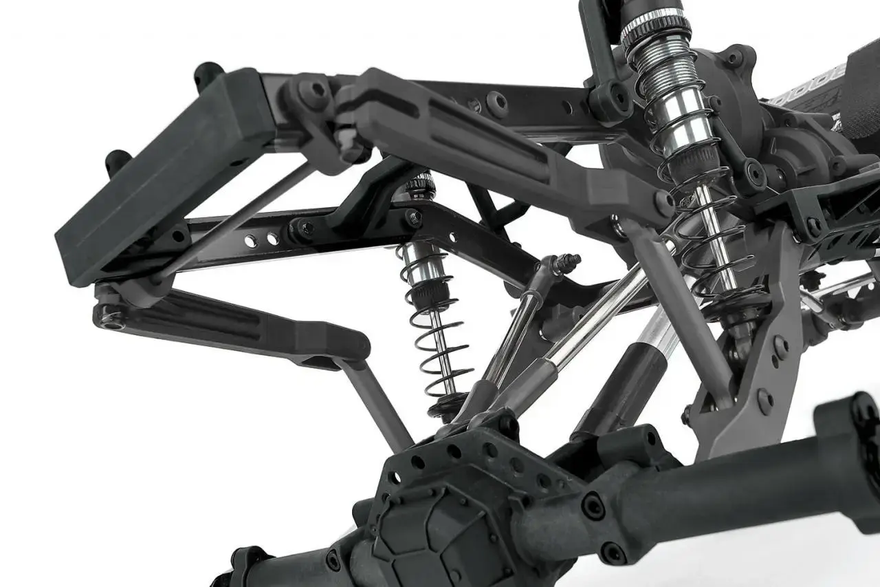 TRAILING ARM REAR SUSPENSION: At the heart of the Gatekeeper Suspension (GKS) are the rear trailing arms. This design moves the shocks forward, thus improving weight bias. Because the shock mounting points are farther forward on the lower links and chassis, this allows for a larger window for shock tuning and an optimized anti-roll bar mounting position.