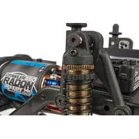 - Factory Team shocks:For ultra-smooth performance and looks, our machined aluminum threaded bronze-anodized shocks with black plastic caps and aluminum collars are included.