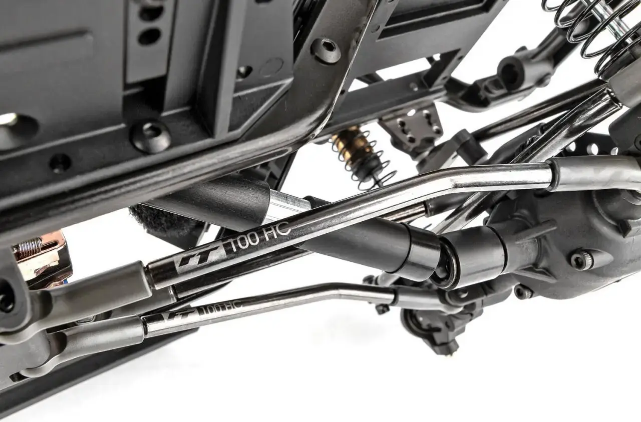 - 12.3” and 12.8” wheelbase high-clearance links:Our 5mm heavy-duty links are black nitrate-coated with FT logo and length etched right on them for easy reference.