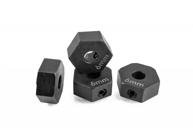 - Factory Team steel wheel hexes:Steel wheel hexes (12x6mm) add weight down low and provides a strong solid mount for your favorite plastic or aluminum wheels.