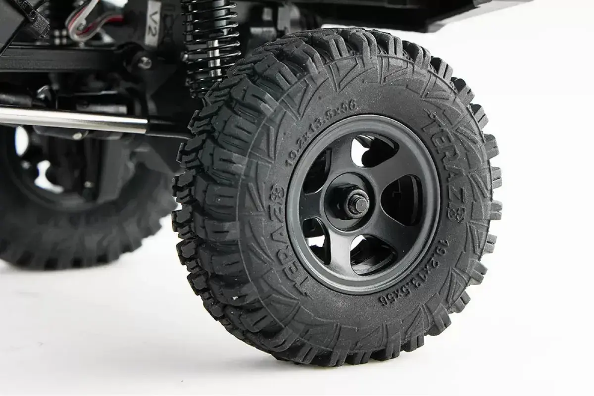 The FCX18 features a well designed 4 point suspension link system to assist drivers by more effectively dispersing and absorbing impacts and vibration in many different driving conditions. This helps maintain a high level of balance and stability in even the roughest of environments.