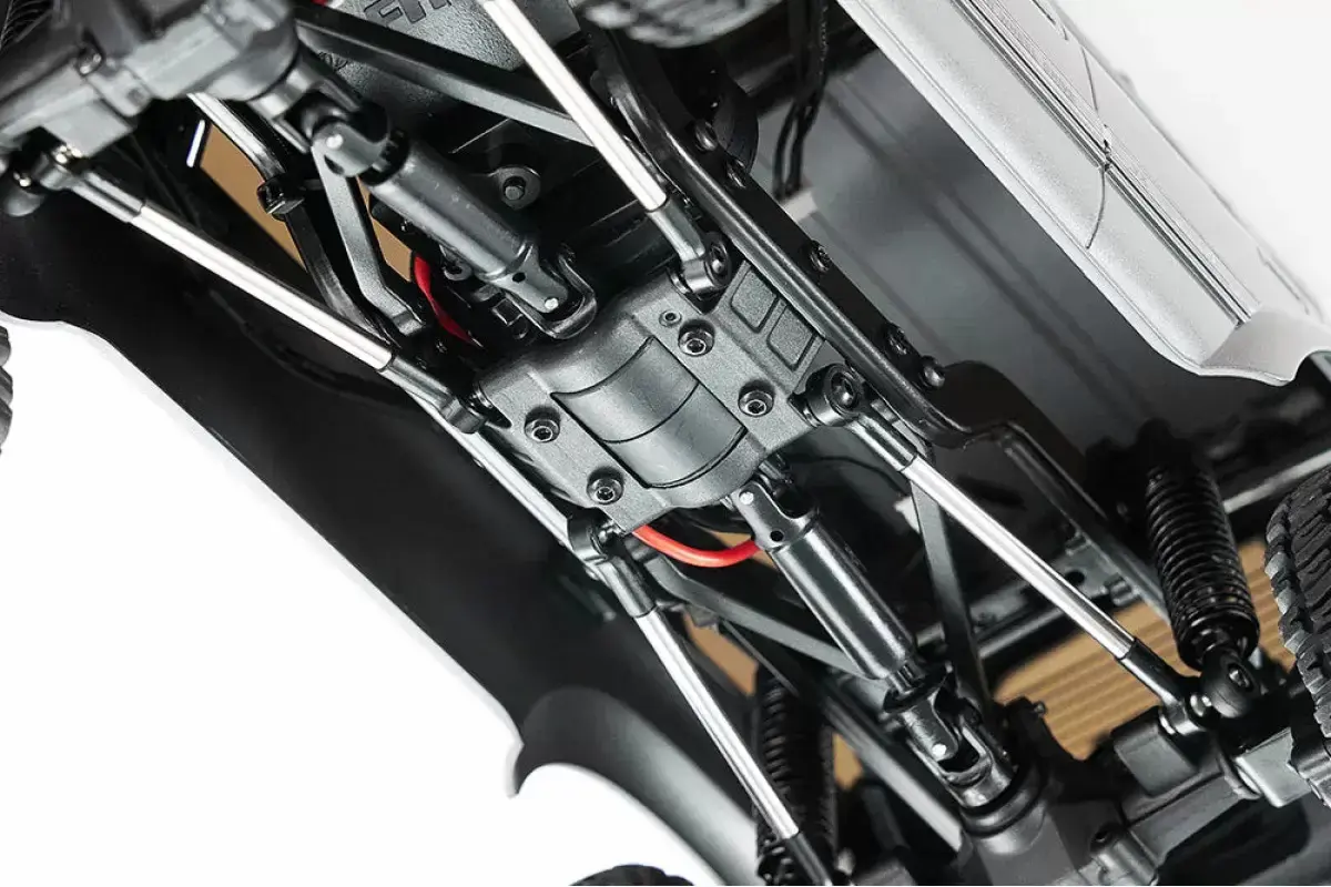 The FCX18 comes preinstalled with a metal drivetrain, further adding to the durability of this car. This includes the differentials, universal joint driveshafts, suspension links and internal gears.