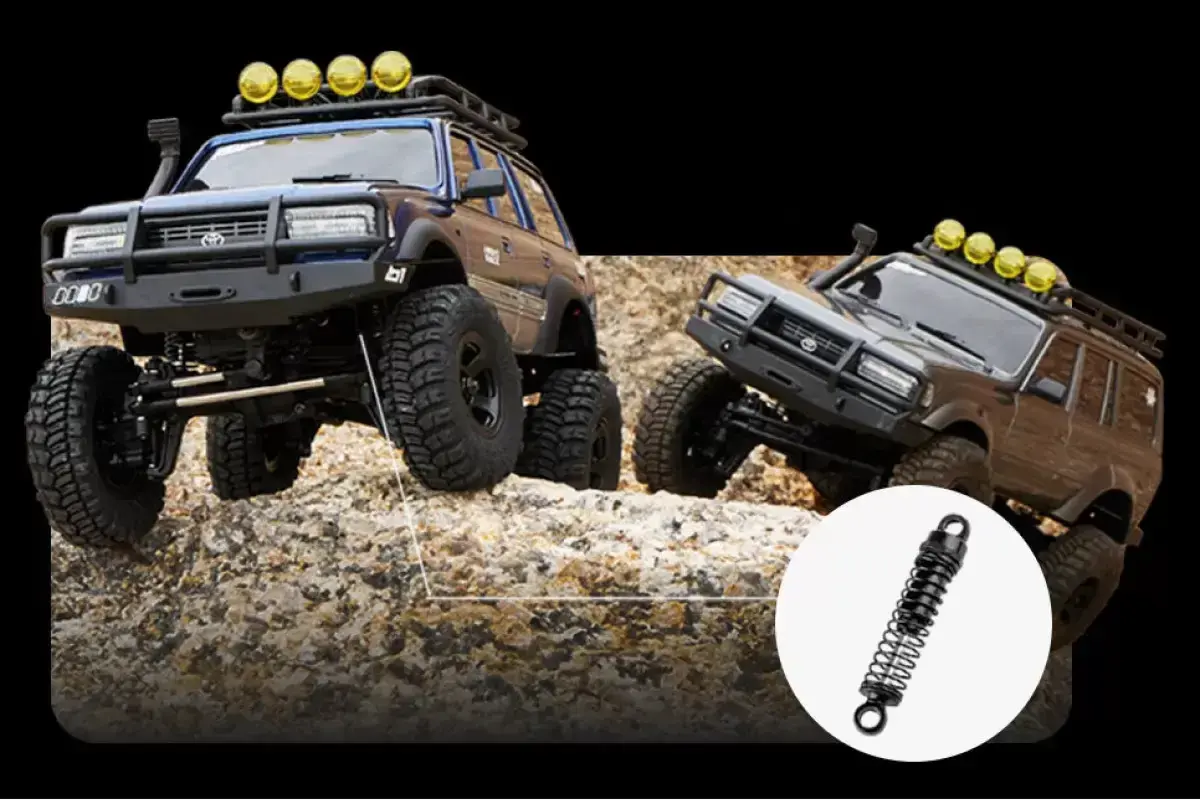 Coil springs provide stable support and elasticity for the vehicle, maintaining balance on bumpy terrain. The hydraulic shock absorber optimises the suspension system of the vehicle and achieves stable control by regulating the flow of fluid. The synergistic effect of the two allows the vehicle to maintain a stable posture at all times so the car can easily cope with various challenges.