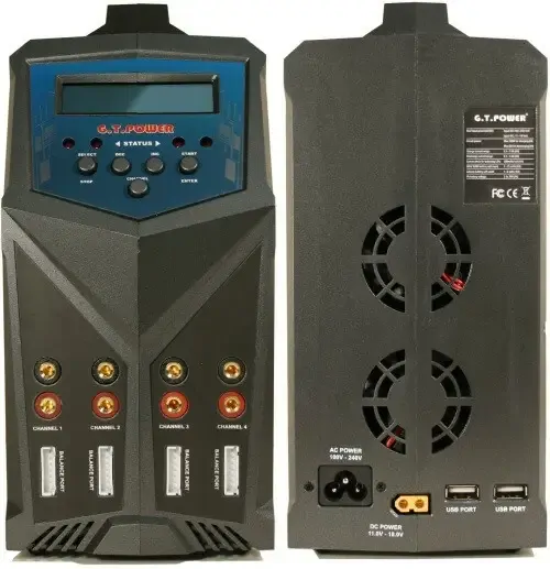 The G.T. Power Pro Quad Charger consists of four multi-chemistry capable rapid chargers/dischargers & cell balancers with built-in microprocessors.