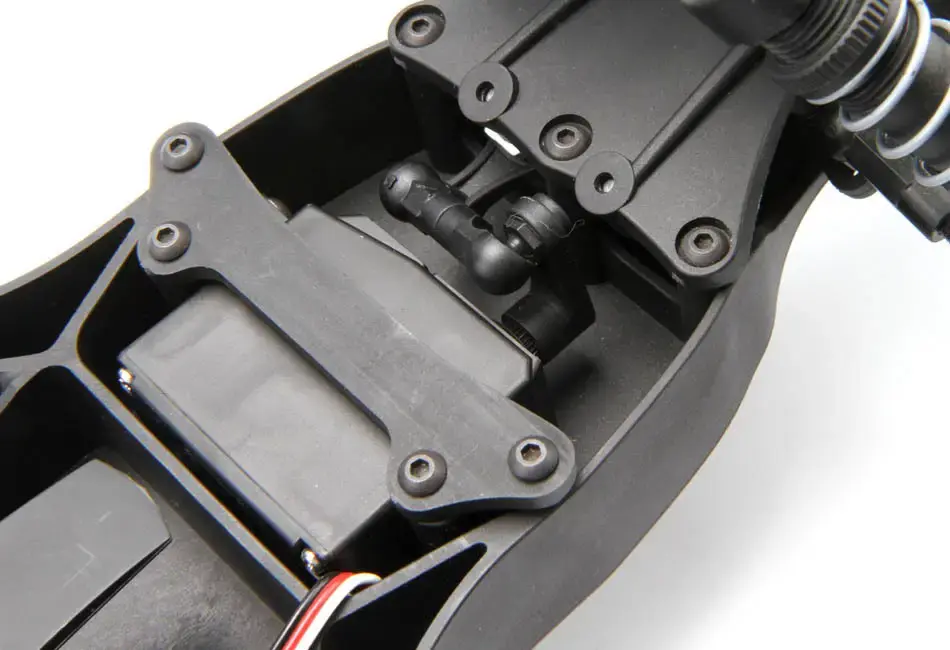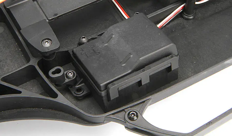 A simple flip of the rear battery mount will allow you to secure the Ni-MH/Ni-Cd or Li-Po battery pack of your choice with an easy to use thumbscrew hold down strap.