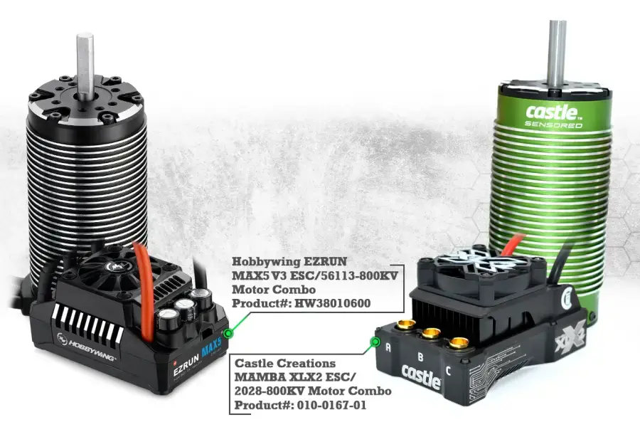 Speed controller: 1/5th scale ESC with 200 amp continuous current rating to match the motor