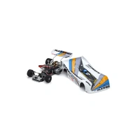 - Assembly chassis kit includes pre-glued front and rear tires and an unpainted body