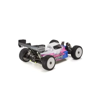A newly developed centre gearbox allows for adjustable spur gear height, providing flexibility for different gear ratios and motor setups. The buggy also includes a redesigned body and rear wing to enhance aerodynamic performance and overall stability.