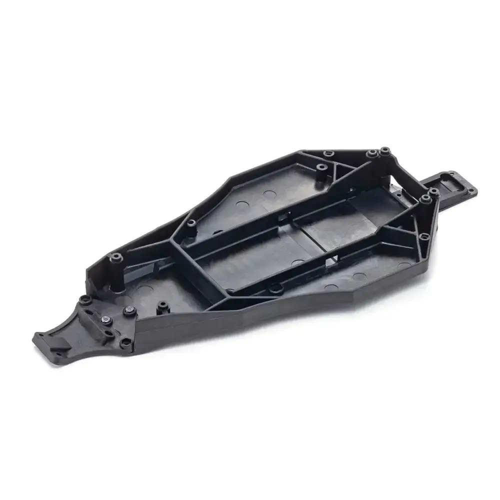 - Moderate flex characteristics of the resin main chassis enhances grip for control stability and allows plenty of room for easy installation and assembly of RC components.