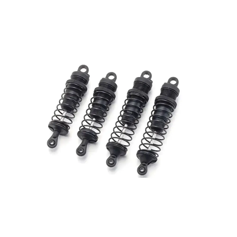 - Resin oil-filled shocks absorb and reduce shocks from the road surface to maintain stable posture. With dial-adjustable spring tension, chassis height is easily changed. Compatible with competition-level springs.