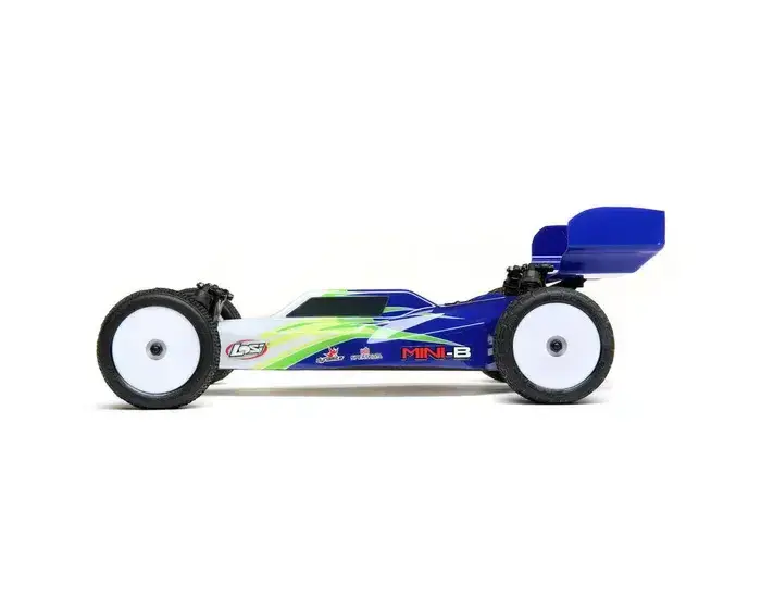 Featuring TLR 2wd buggy engineering and performance in a 1/16th package, the Losi Mini-B Buggy is terrain-tearing and track-ready. The larger 1/16th scale is stable on the track generating quicker speeds and improved handling.