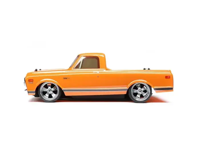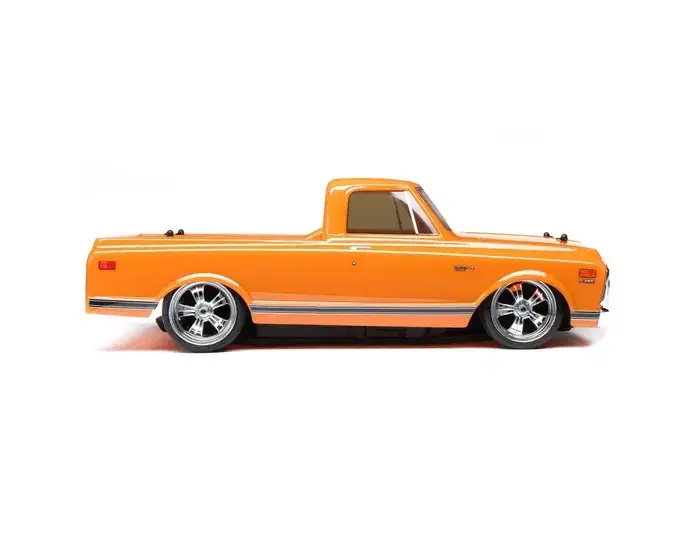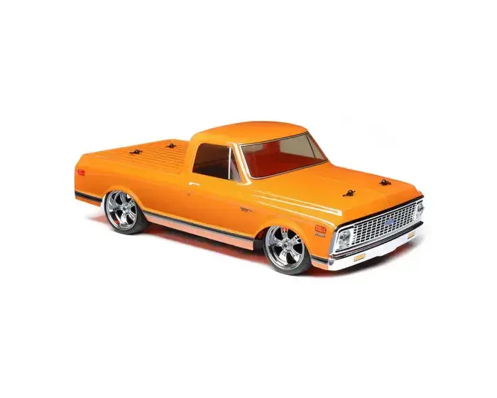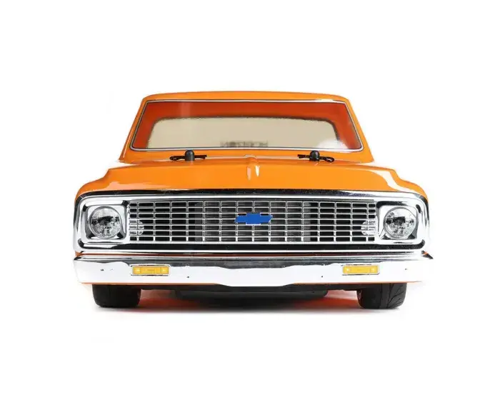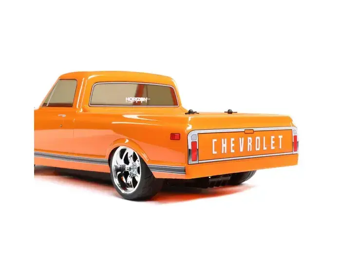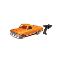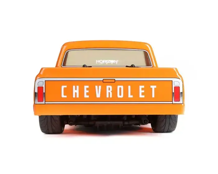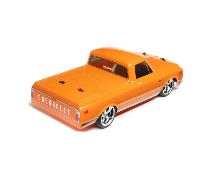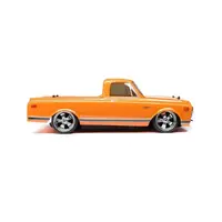 Turn heads everywhere you go with the Losi® V100 Chevy 1972 C10 Truck. The latest addition to Losi's on road vehicles, the officially licensed body comes standard with a molded grill, bucket lights and bumper lights to improve the scale details. Losi has once again taken it to the next level with a truly innovative design and the quality workmanship drivers expect. Auto fans will love the truck's incredible scale details while RC enthusiasts won't be able to get enough of the AWD shaft driven drivetrain and proven worry-free chassis. The AWD drivetrain provides impressive traction and enhances performance while the V100 chassis gives you a balanced, neutral handling truck that's fun to drive. The 1972 C10 has been carefully crafted to give a classic silhouette that scale enthusiasts will love. From its low-rise body, to impressive performance, the Losi 1972 C10 Truck gives drivers Street Rod C10 styling in a proven V100 platform.