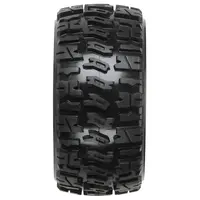 This is a pair of pre-mounted Trencher 2.2" 1:16 E-REVO® Tires. Leave a mark with your Mini E-REVO wherever you go with Pro-Line's Trencher tires. The Trencher 2.2" tires are designed to give your Mini optimal traction on just about any surface. Super cool horizontal H shaped treads give your truck ridiculous amounts of forward bite. With a tall tread height, you'll find that durability and longevity are second to none. The Trencher is the Ultimate Bashing tire!