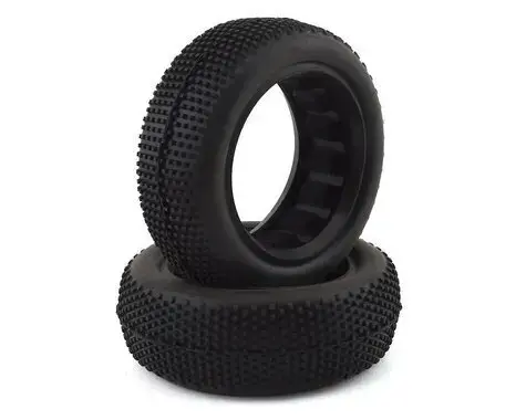 Super Mini is a Pin Front 2wd Buggy tire, ready to rip into the surface providing excellent grip and stability. While it may look like a traditional buggy tire pattern, the Super Mini has an ideal spacing in between each lug to provide awesome traction even in moderate or adverse track conditions. Good for both wet and dry track this Super Mini 2.2” tire will mount to any industry standard 2wd front buggy wheel. Available in 5 different rubber compounds. Tires come with closed cell inserts.