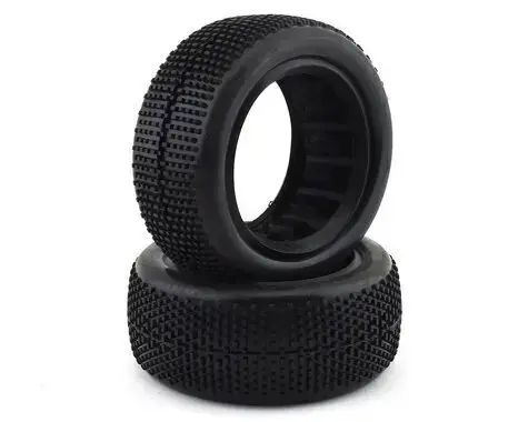 The Super Mini is a Pin Front 4wd Buggy tire, ready to rip into the surface providing excellent grip and stability. While it may look like a traditional buggy tire pattern, the Super Mini has an ideal spacing in between each lug to provide awesome traction even in moderate or adverse track conditions. Good for both wet and dry track this Super Mini 2.2” tire will mount to any industry standard front 4wd buggy wheel. Available in 5 different rubber compounds. Tires come with closed cell inserts.