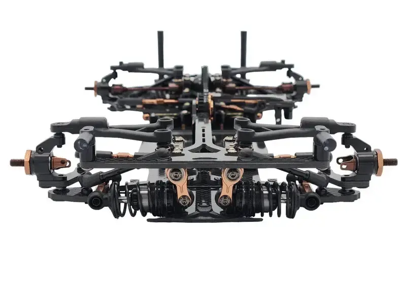 - Ultra-Low CG Design: Lay-down push-rod shock absorbers, 19mm high topdeck, and under-arm anti-roll bar for exceptional stability.