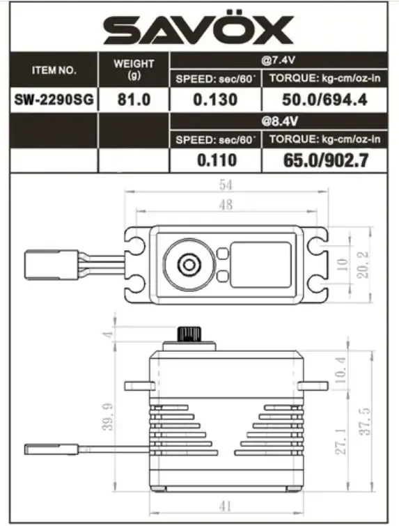SpecificationsSavox Digital Super Torque 50kg/t Servo - SAV-SW2290SG-BE