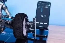 With the SkyRC digital camber gauge, both camber and toe angle of a 1/8 RC car can be measured and the data sent directly to Your smartphone via Bluetooth connection. All you need is the free app "RC Gears" in order to finally start fine-tuning the wheels like a pro!