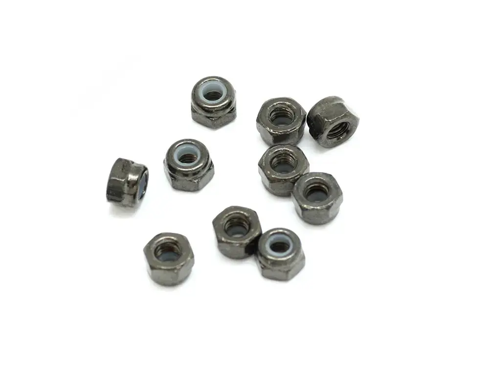 When installing the M3 locking nuts, it's important to tighten them properly without over-tightening, as the nylon insert requires sufficient pressure to engage and prevent loosening.