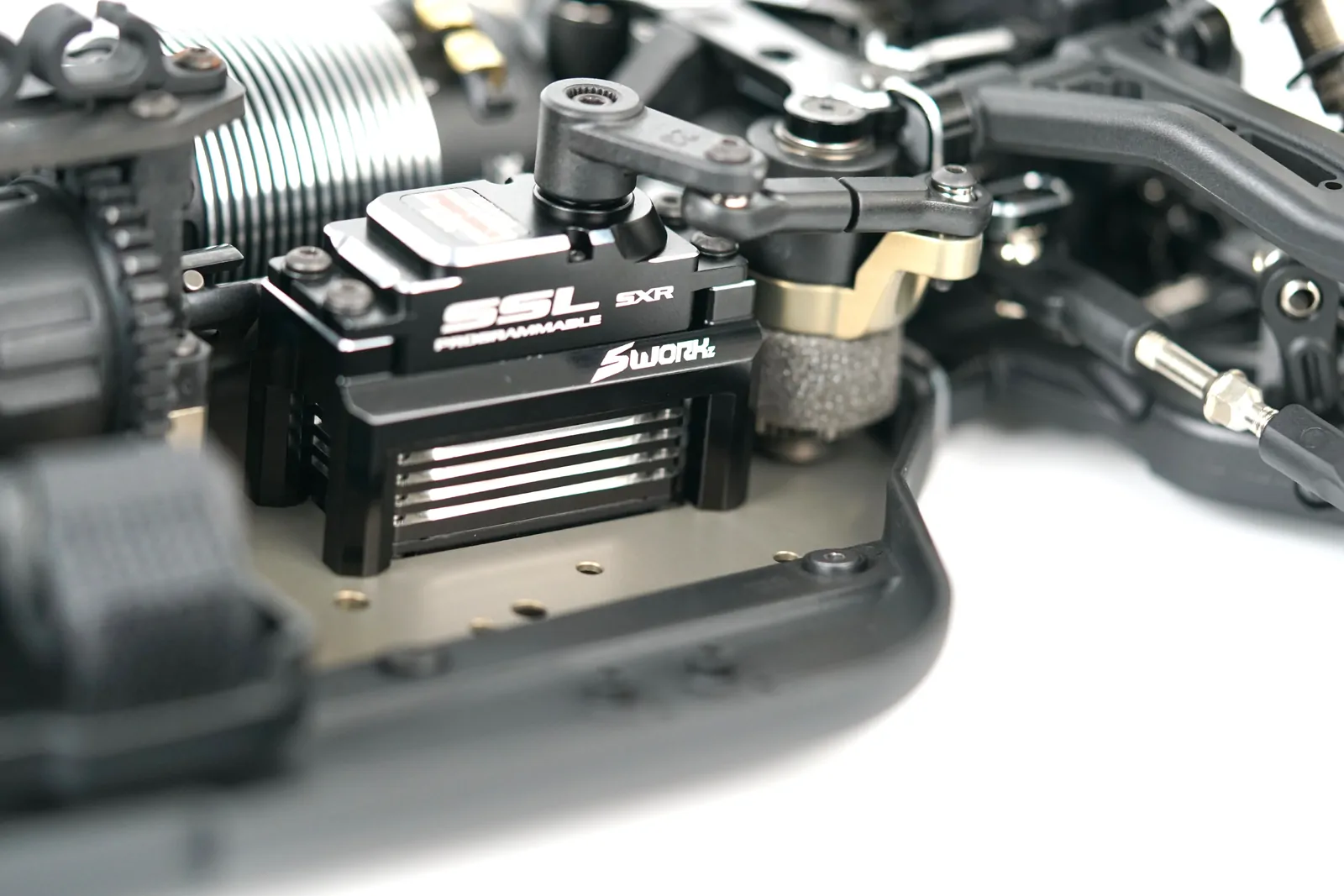 SWORKz launches a new quality option servo mount for whole S35-4e EVO and GT3.0e series. This CNC machined aluminum mount will provide the steering servo solid and quicker steering response. It comes in a new Samurai Black color with diamond cuttings making it look fantastic and of high quality.