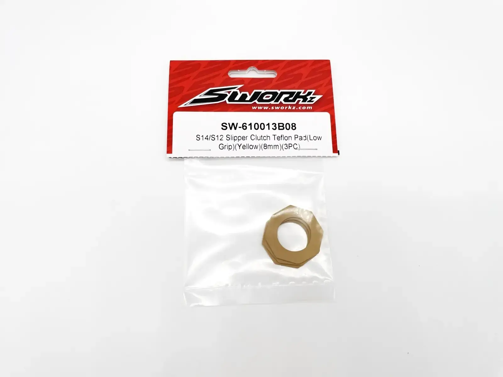 If you are racing or driving your SWORKz RC car on low-grip tracks and need to optimize the slipper clutch for these conditions, the SWORKz Slipper Clutch Teflon Pad (Low Grip) (Yellow) (8mm) (3) SW610013B08 is a suitable option to consider.
