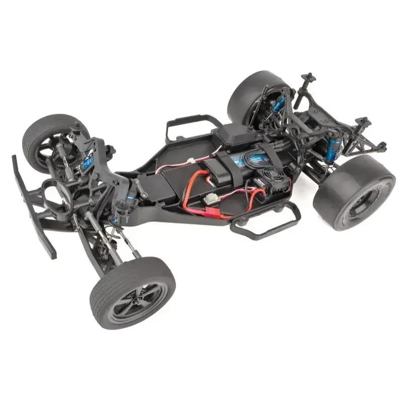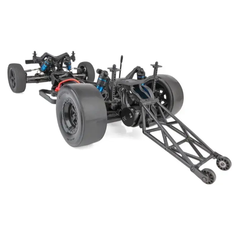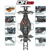 Based on the 9-time R.O.A.R. Short Course National Championship platform, the DR10 Drag Race Car features a water-resistant high-power Reedy brushless speed control and 3300kV brushless motor, a 2.4GHz 2-channel radio system, as well as our ALL NEW DVC (Dynamic Vehicle Control) receiver unit with built-in adjustable digital gyro. Add to that a Reedy metal-gear, digital, high-torque servo and a water-resistant enclosed receiver box.