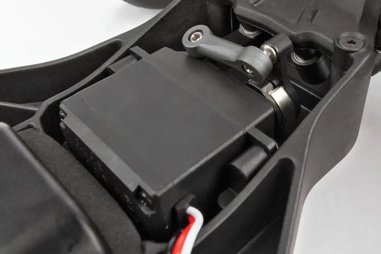 - Low center-of-gravity molded composite chassis with hook-and-loop battery straps that accommodate both NiMH and 2S and 3S LiPo battery packs