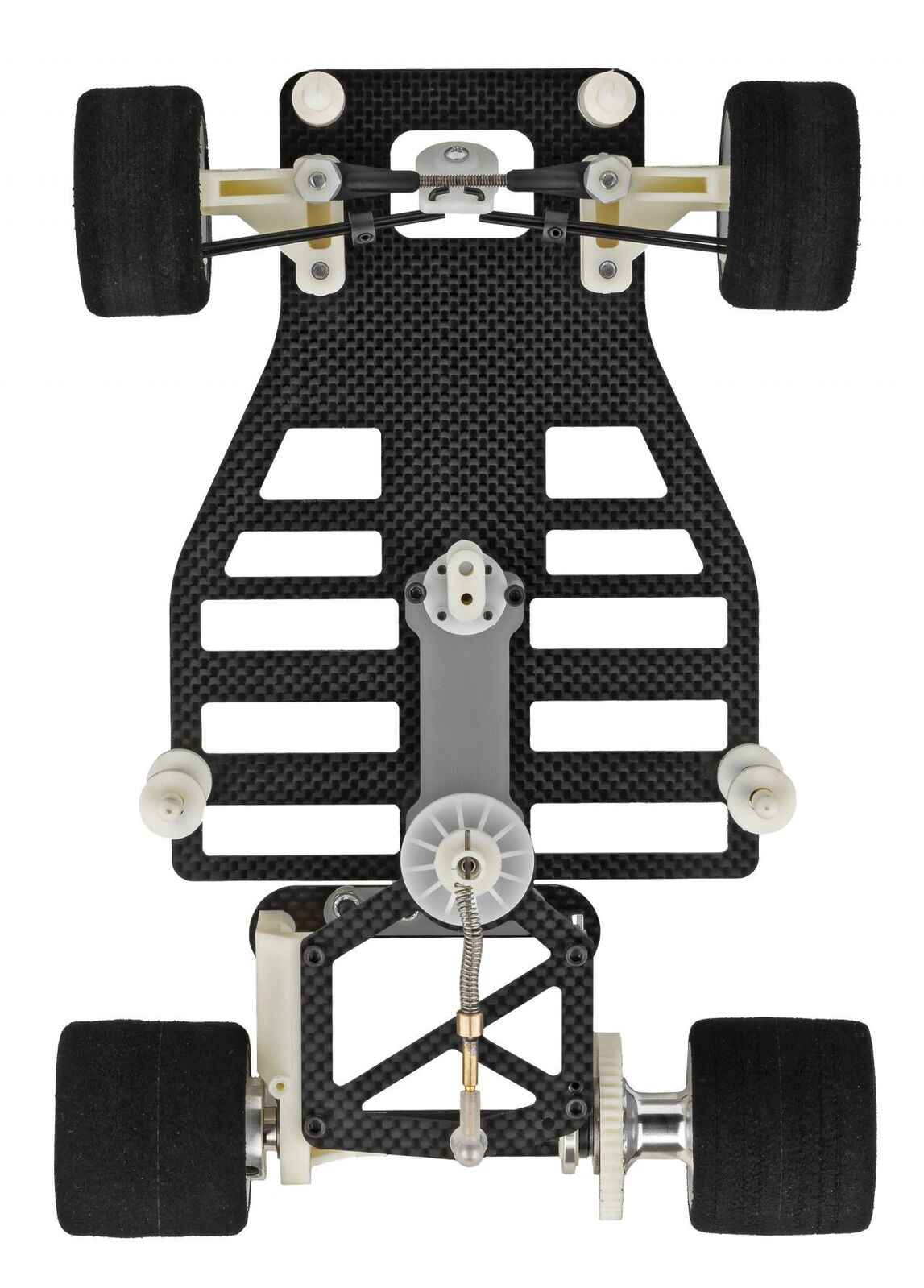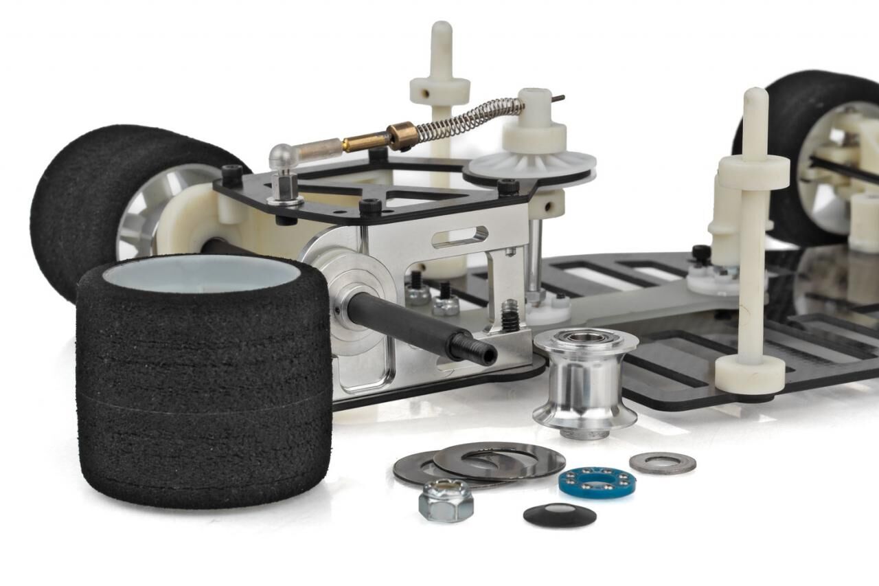 Superlight racing wheels contributed considerably to the RC12L’s reduced weight and improved response. A full range of tire compounds, coil springs and gear ratios are also available for fine tuning.