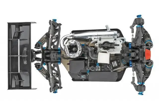 - Rear gearbox features a 0 deg. pinion gear angle and center mounted rear chassis brace mount