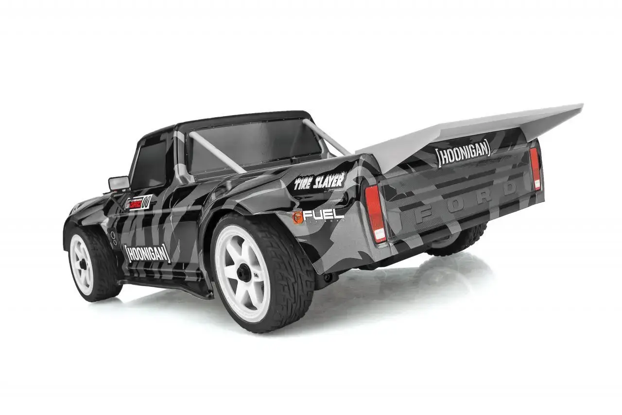 The Reflex 14R chassis has been updated from our previous version with the latest features in on-road racing. Sealed front and rear gear differentials, a molded tub chassis with covered center driveshaft, and adjustable shock positions. This makes it a perfect platform for the Hoonitruck and tire-slaying action!