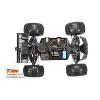 The Team Magic E5 HX chassis has an easy multi-port plug which let you change electronics easier. Less cables in the car thanks to cable tunnels. Quick release battery straps hold your 2- or 3-cell batteries in place. The all-new dust/dirt filter on the THOR speed control protect the fan from water and dust.
