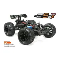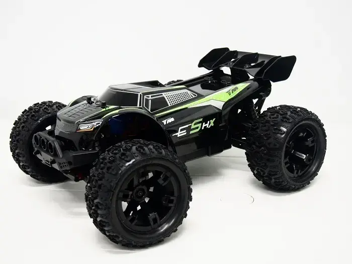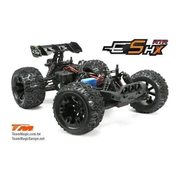 The E5 HX is currently the fastest and strongest 1:10 scale Racing Monster on the market. The front bumper is also equipped with three white and two red bright LEDs. The Team Magic E5 HX includes a strong, well-shaped pick-up Racing Monster polycarbonate body to protect the internal components. Durable 14mm wheel hexes help handle the high power transfer towards the high-traction compound K-Factory tires which offer additional performance and fast acceleration on every surface. We also added an adjustable and durable ball-raced wheelie bar on the rear to give highest control and support wheelie's. You'll like it!
