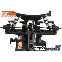 The new parts (upper and lower bulkheads, centre layshaft mounts, steering bellcrank) are realized in the same "HARD" plastic which has already showen its ability on the E4RS II and E4RS II EVO (arms, uprights and steering blocks).
