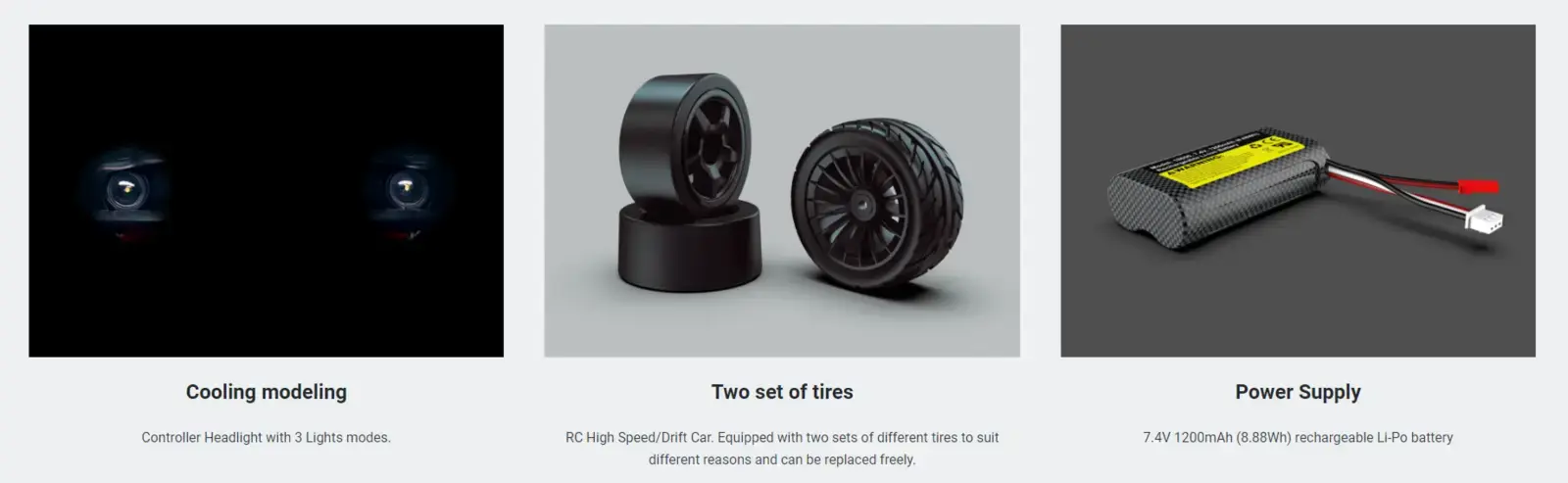 - Two modes: High Speed Car/Drift Car(replace the Tire)