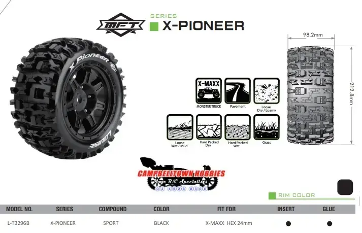 SpecificationsX-Pioneer Rim & Tyre X-MAXX 24mm hex